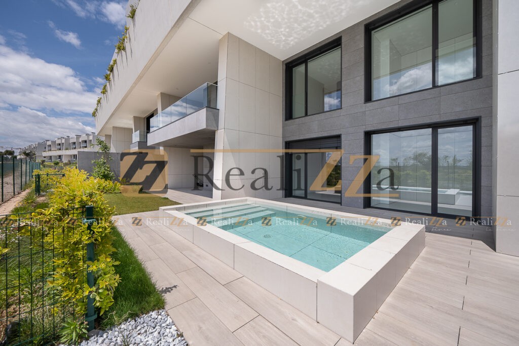 Realizza la Finca, vende este bajo con jardín con orientación sur y en primera linea del campo del golf de la finca, la vivienda cuata con aerotermia y vigilancia 24, además unas amplias zonas comunes con piscinas, gimnasios y salas de coworking.